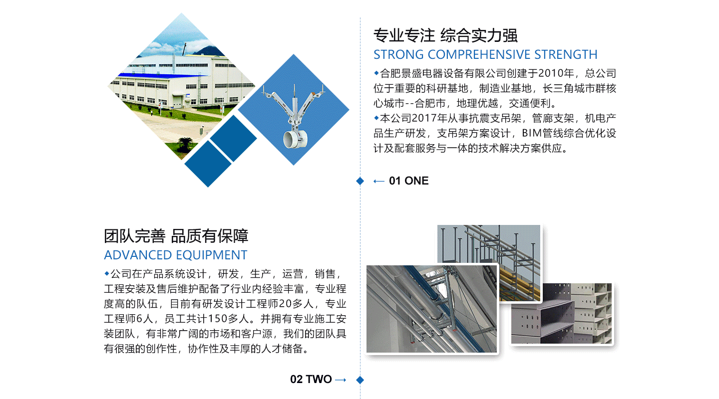 合肥景盛電器設(shè)備有限公司創(chuàng)建于2011年,注冊(cè)資本3000萬(wàn),總公司位于中國(guó)重要的科研基地,制造業(yè)基地,長(zhǎng)三角城市群中心城市-----合肥市,地理位置好,交通方便。本公司2017年從事抗震支吊架,電纜橋架,機(jī)電產(chǎn)品生產(chǎn)研發(fā),支吊架方案設(shè)計(jì),BIM管線綜合優(yōu)化設(shè)計(jì)及配套服務(wù)與一體的技術(shù)解決方案供應(yīng)。公司在產(chǎn)品系統(tǒng)設(shè)計(jì),研發(fā),生產(chǎn),運(yùn)營(yíng),銷售,工程安裝及售后維護(hù)配備了行業(yè)內(nèi)經(jīng)驗(yàn)豐富,服務(wù)程度高的隊(duì)伍,目前有研發(fā)設(shè)計(jì)工程師20多人,工程師6人,員工共計(jì)150多人。并擁有施工安裝團(tuán)隊(duì),有非常廣闊的市場(chǎng)和客戶源,我們的團(tuán)隊(duì)具有很強(qiáng)的創(chuàng)作性,協(xié)作性及豐厚的人才儲(chǔ)備。 公司先后通過ISO9001:2015質(zhì)量管理體系認(rèn)證...